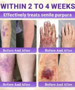 Ich bin 62 Jahre alt und bekomme oft große violette Flecken auf meinen Oberschenkeln, auch ohne gegen etwas zu stoßen. Schon eine leichte Berührung kann zu Blutungen führen. Mein Arzt sagte, es handele sich um senile Purpura aufgrund alternder Haut und schwacher Blutgefäße. Ich hatte schon so viele Cremes ausprobiert, aber nichts hat wirklich geholfen – also habe ich nicht viel erwartet.