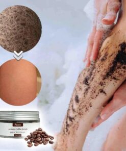 - Zutaten: Bio-Kaffeepulver, Salz aus dem Toten Meer, Olivenöl, süßes Mandelöl, Kaffee-Arabica-Samenöl, Kokosnussöl, Bio-Sheabutter, Kakaoextrakt, Arabica-Kaffeebohnen